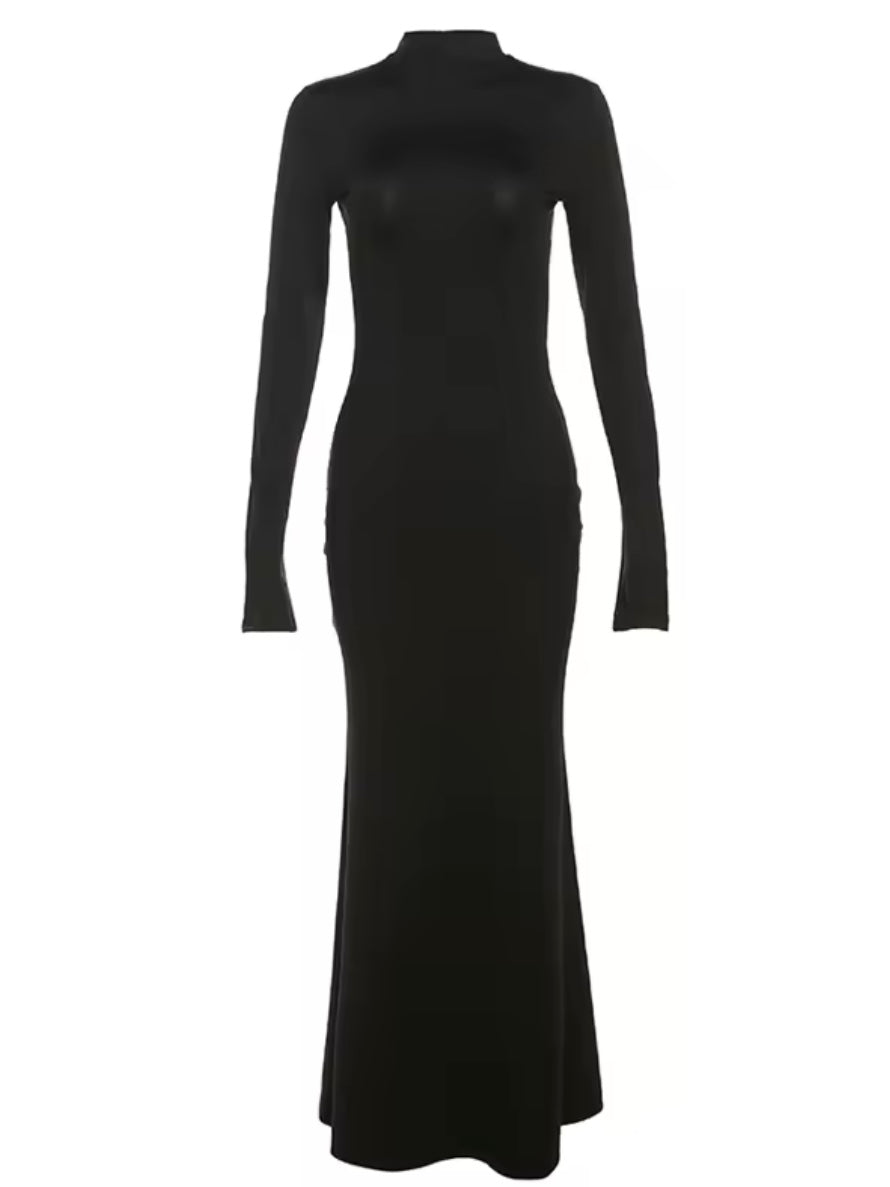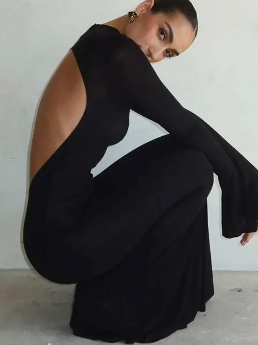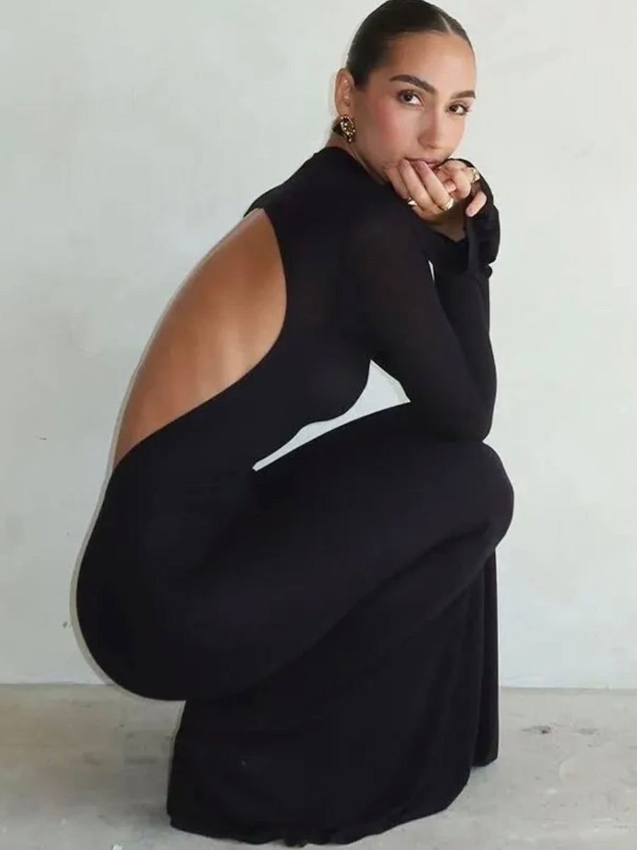 Set coordinato nero composto da top e maxi gonna con spacco. La modella veste una taglia S ed è alta 165 cm. Veste regolare, scegli la tua taglia.