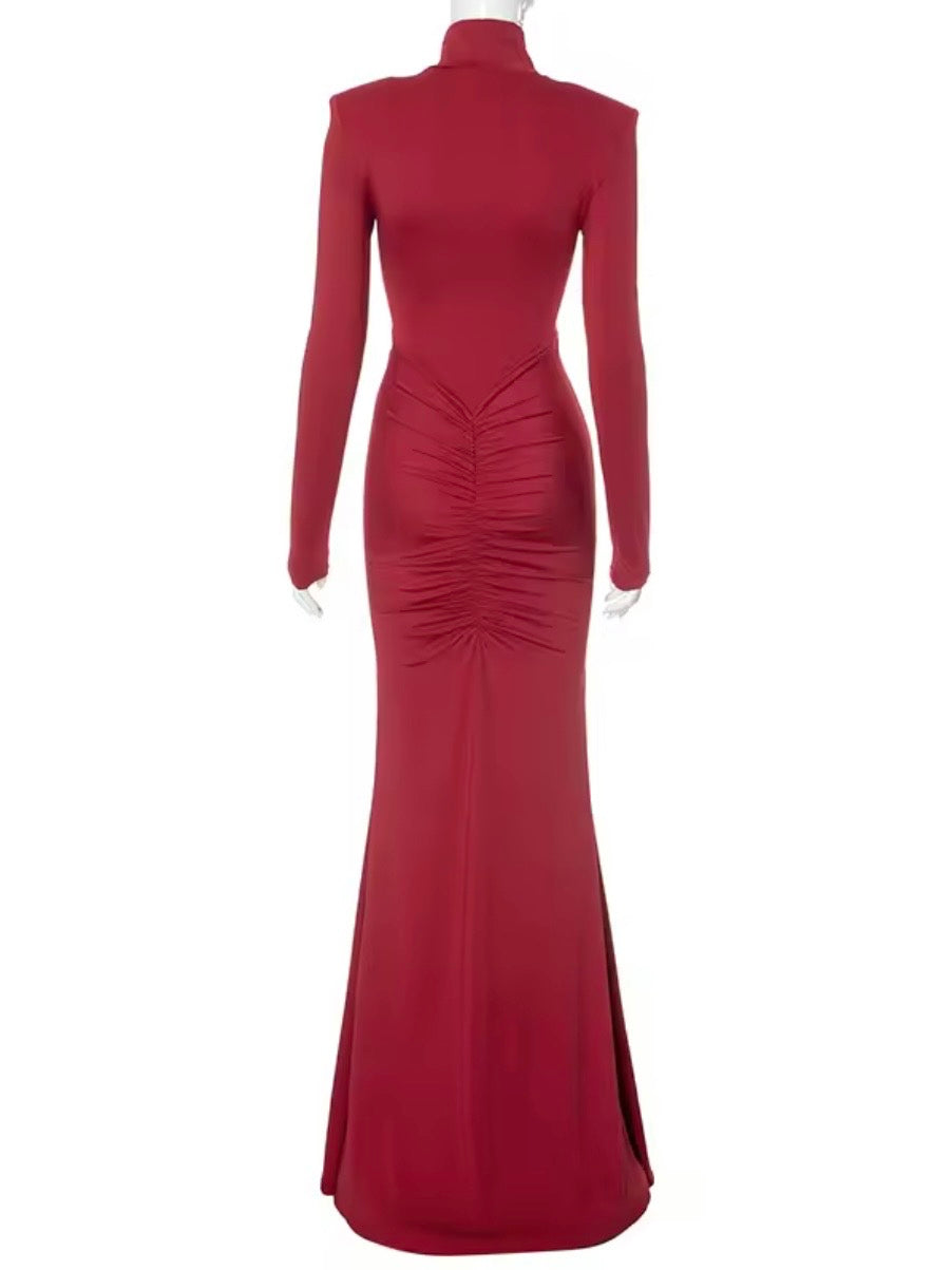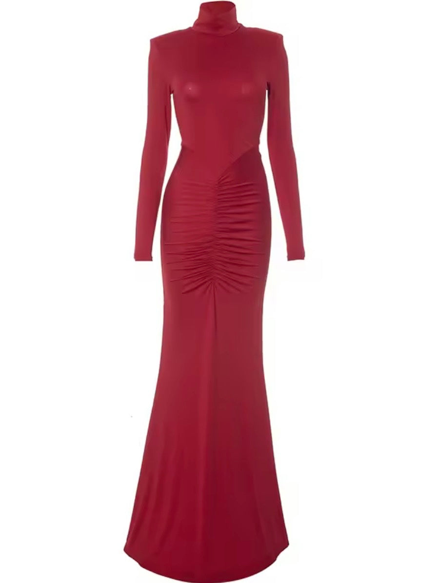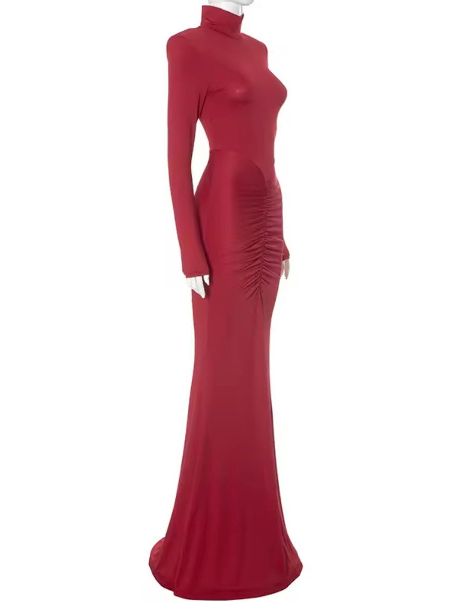 Abito lungo con drappeggio. La modella veste una taglia S ed è alta 160 cm. Veste regolare, scegli la tua taglia.