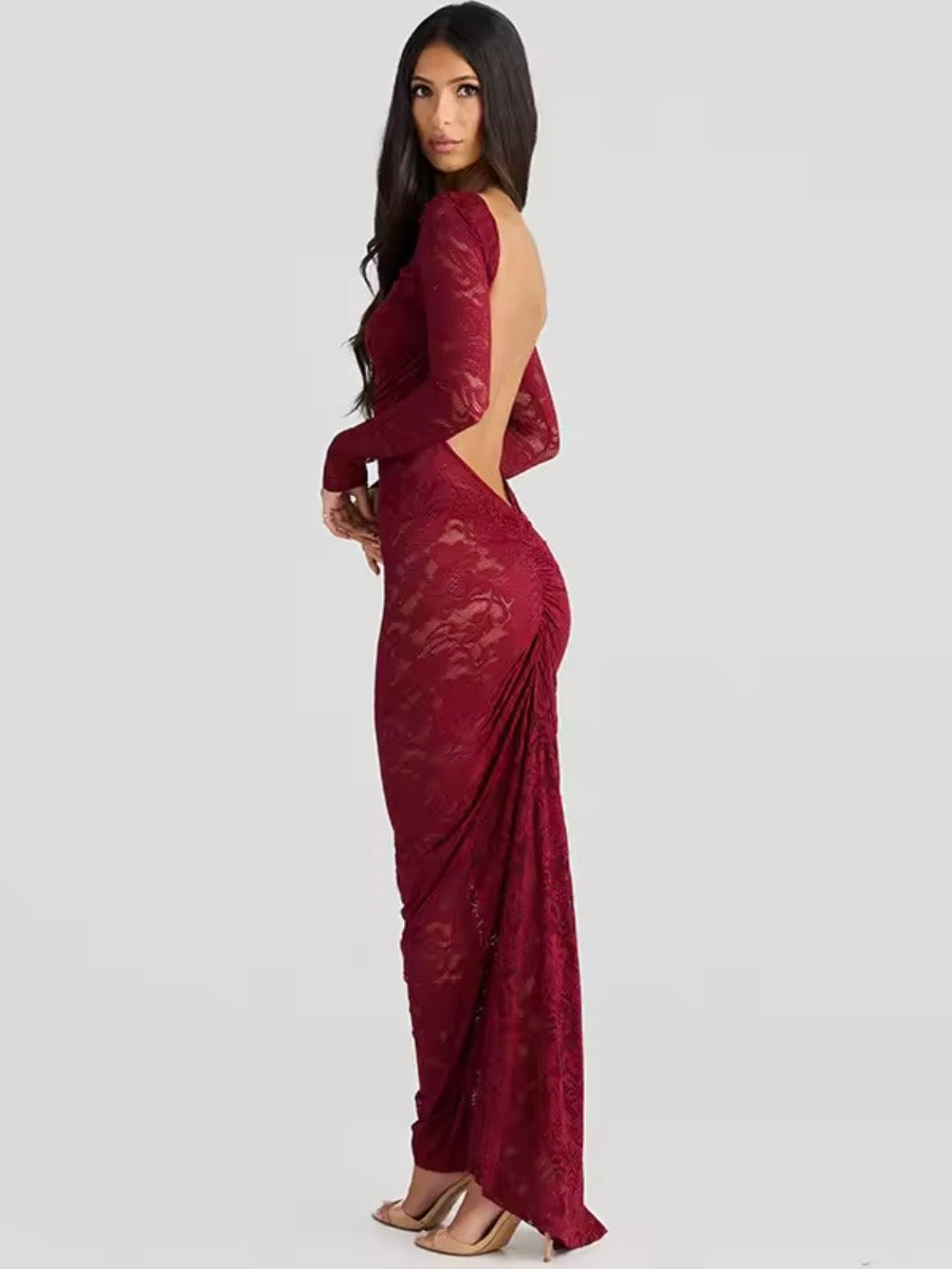 Abito lungo con drappeggio posteriore e scollatura. Più coprente sul sebo, mesh in pizzo. La modella veste una taglia S ed è alta 160 cm. Veste regolare, scegli la tua taglia.