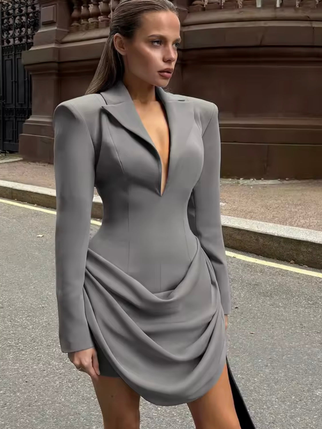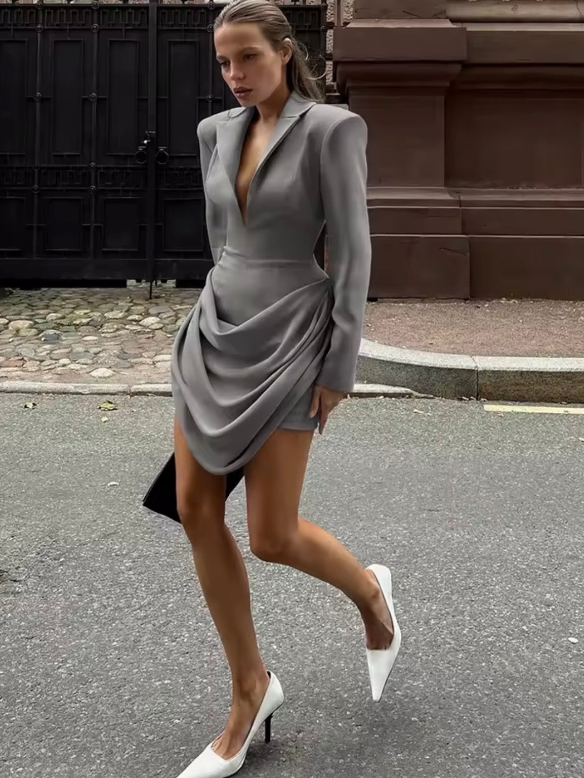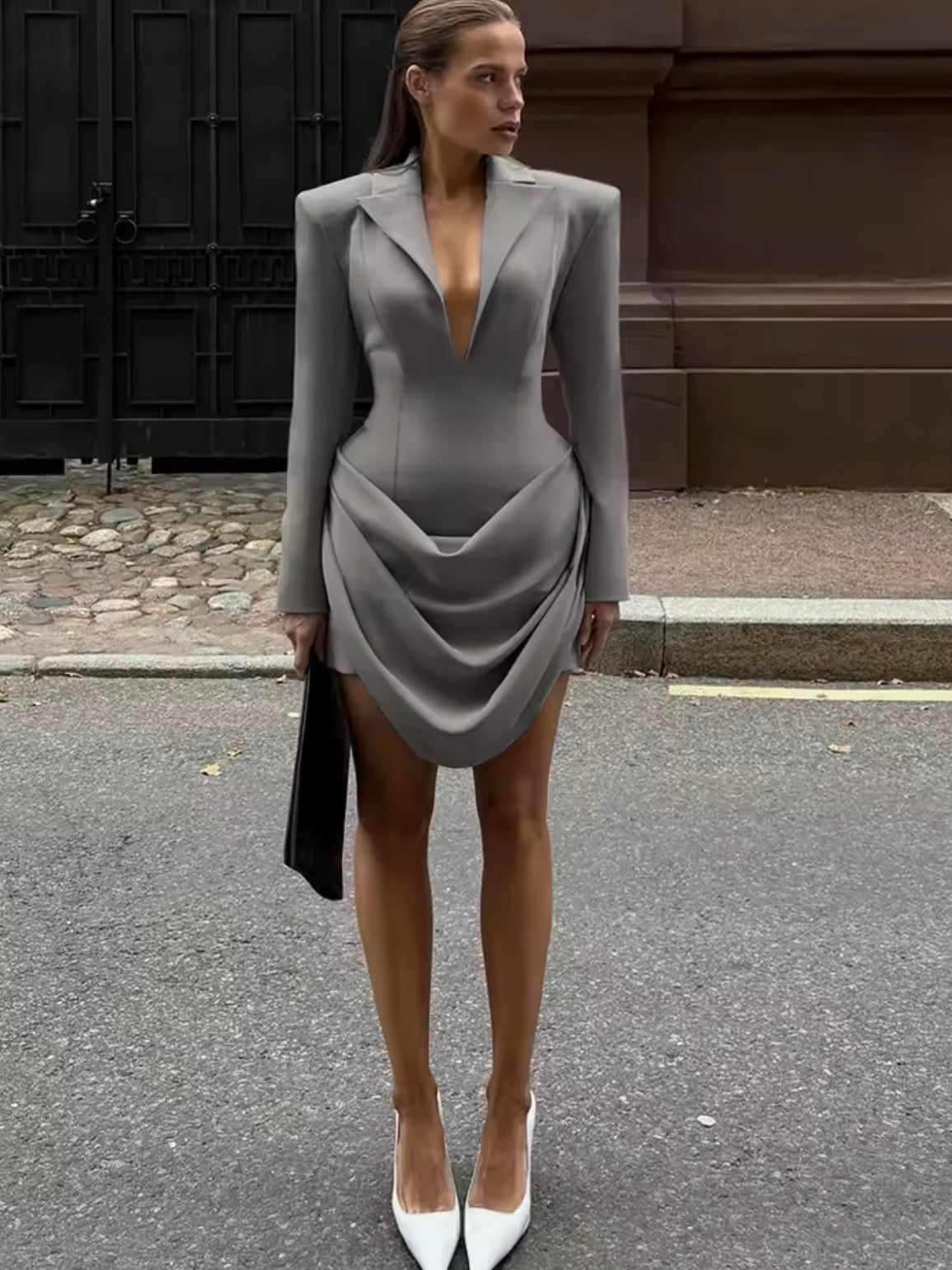 Abito giacca con drappeggio. Veste regolare, scegli la tua taglia.