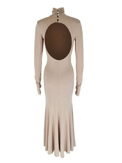 Abito lungo con scollatura posteriore e chiusura con bottoni. Maniche con guanto. La modella veste una taglia S ed è alta 160 cm. Veste regolare, scegli la tua taglia.