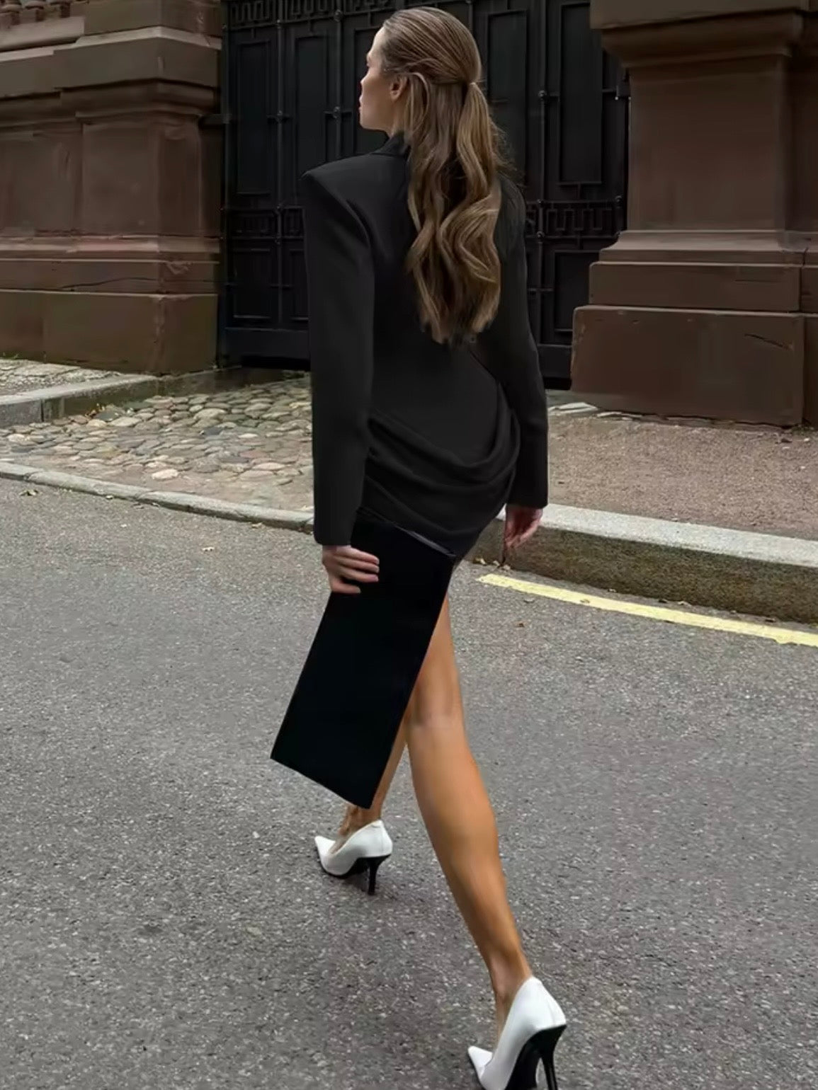 Abito giacca con drappeggio. Veste regolare, scegli la tua taglia.