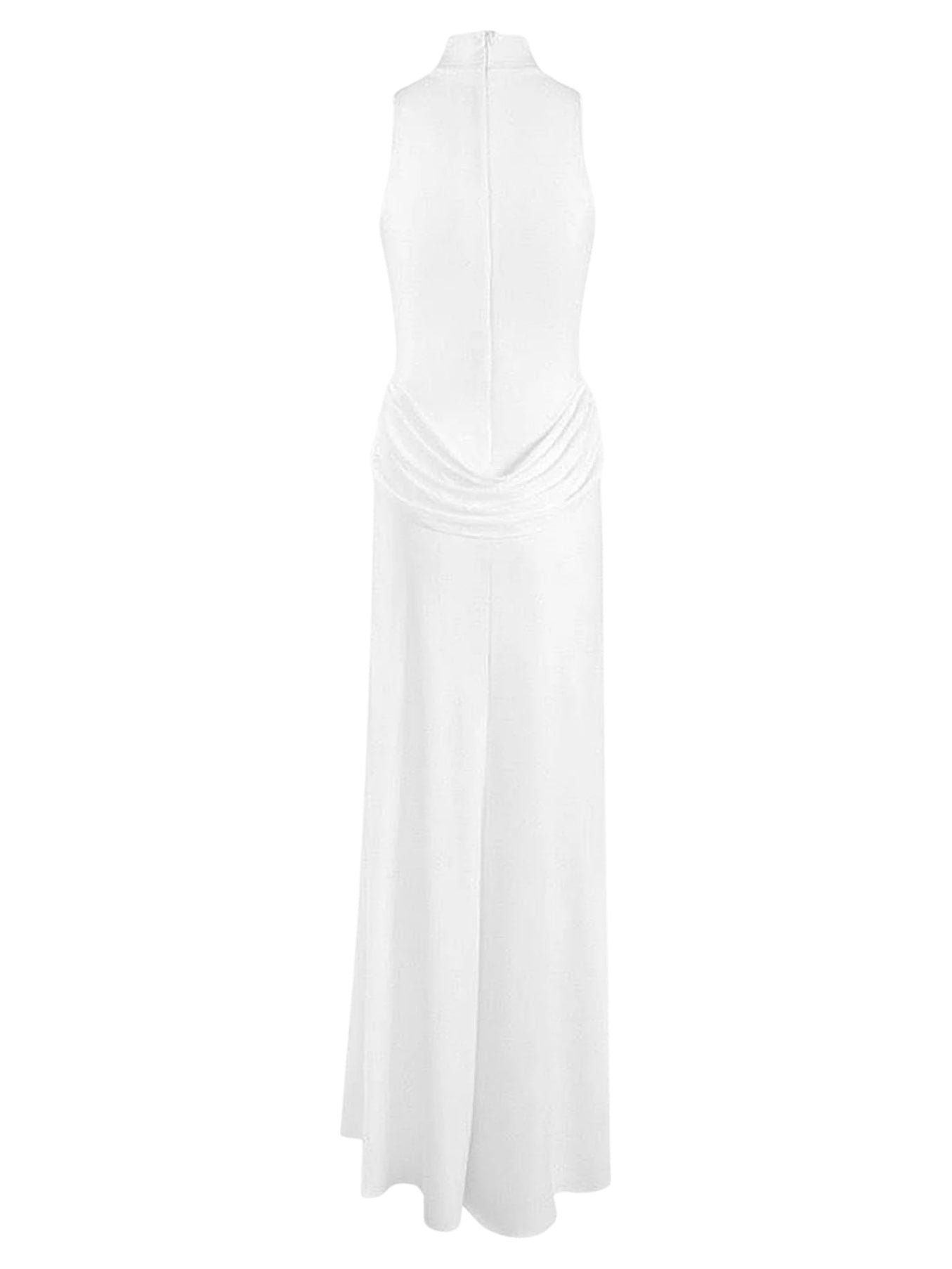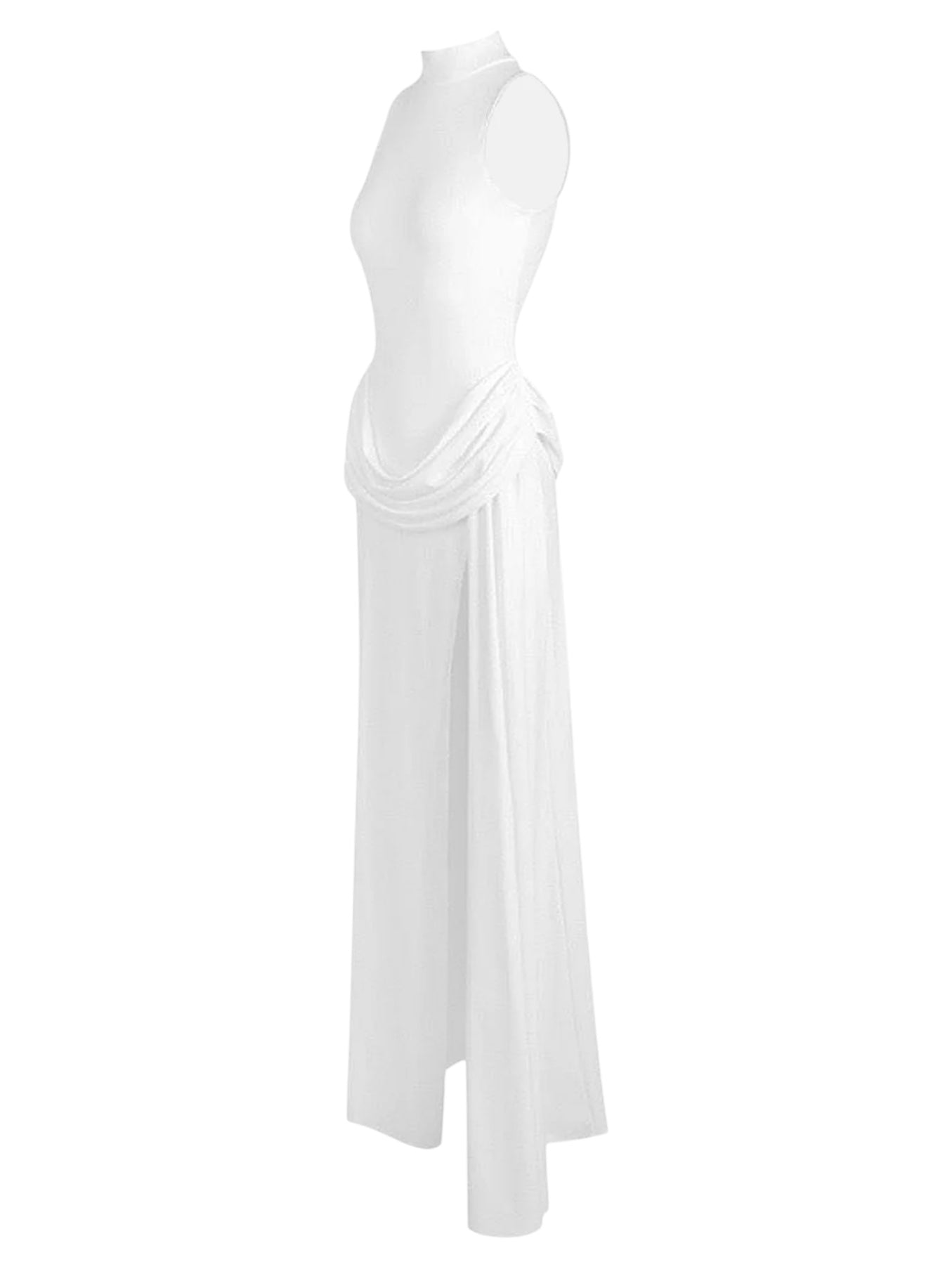 Mini abito bianco con corsetto e drappeggio. Veste regolare, scegli la tua taglia.
